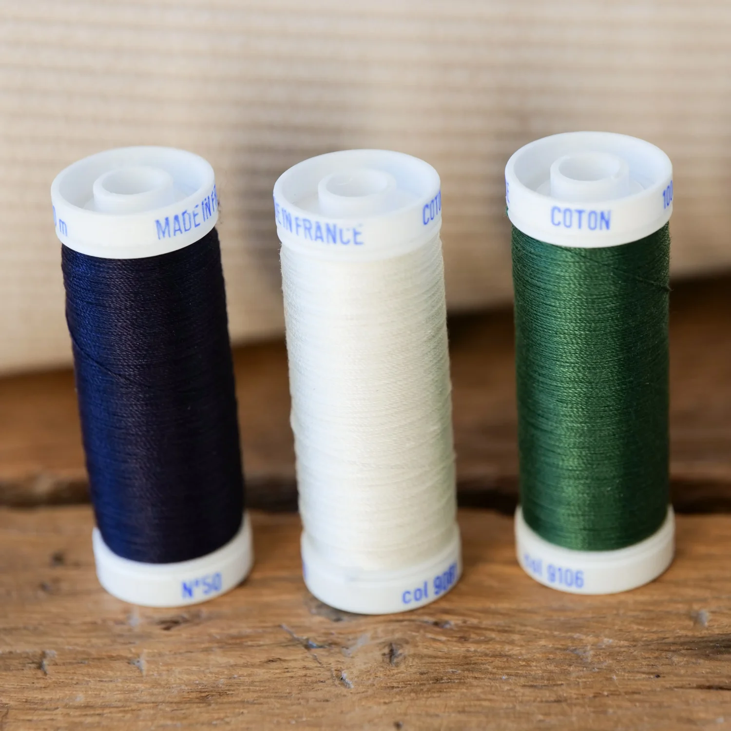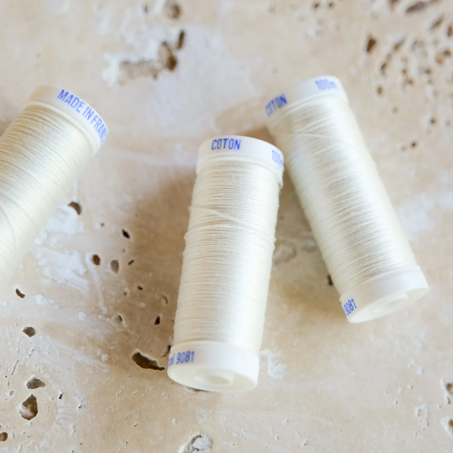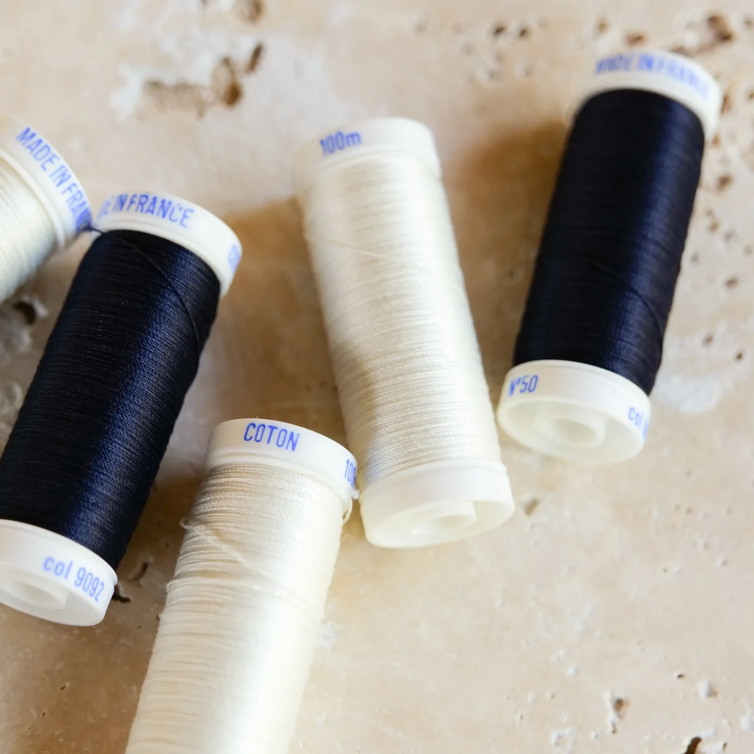 Fil couture coton écru made in France.