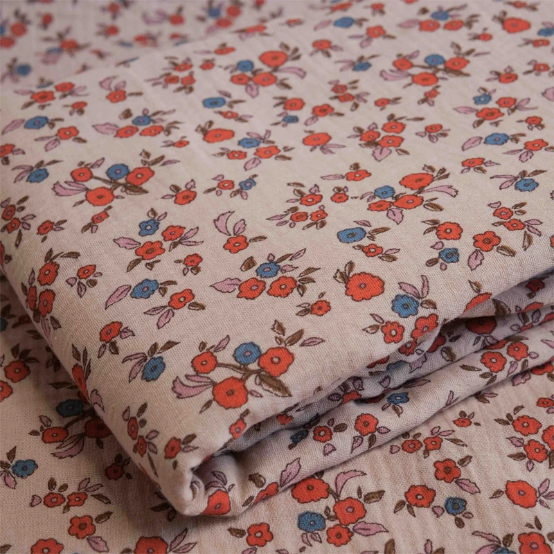 - Effet Texture : Le gaufrage typique de la double gaze apporte du relief à l’imprimé fleuri pour un rendu visuel riche et qualitatif.