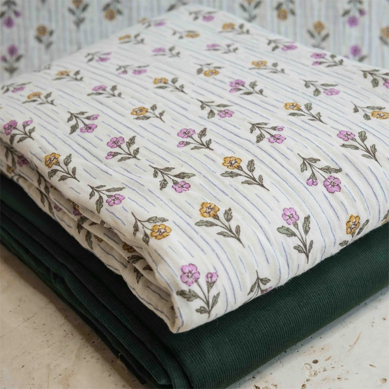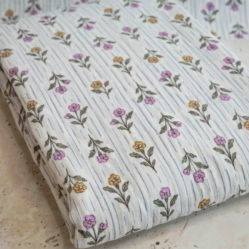 - Effet gaufré : Texture typique de la double gaze qui apporte du relief à l’imprimé fleuri.